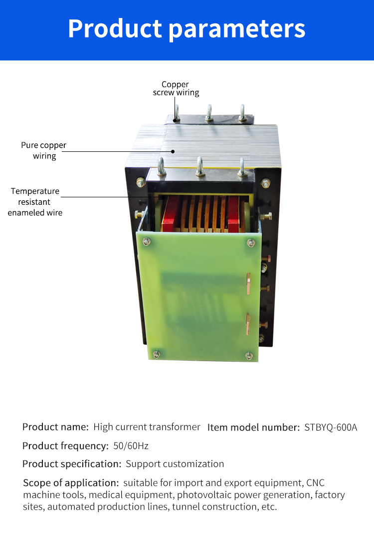 Apresentando nosso transformador de alta corrente resfriado a água, modelo Stbyq-600A. Este transformador adaptável funciona com uma recorrência de 50/60Hz, transmitindo uma execução incomparável para suas necessidades de energia específica.